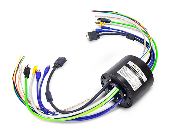 滑環(huán) ,就是負(fù)責(zé)為旋轉(zhuǎn)體連通、輸送能源與信號(hào)的電氣部件。根據(jù)傳輸介質(zhì)來區(qū)分,滑環(huán)分為電滑環(huán)、流體滑環(huán)、光滑環(huán),也可通俗的統(tǒng)稱為“旋轉(zhuǎn)連通”或“旋通”。滑環(huán)通常安裝在設(shè)備的旋轉(zhuǎn)中心,主要由旋轉(zhuǎn)與靜止兩大部分組成。旋轉(zhuǎn)部分連接設(shè)備的旋轉(zhuǎn)結(jié)構(gòu)并隨之旋轉(zhuǎn)運(yùn)動(dòng),稱為“轉(zhuǎn)子”,靜止部分連接設(shè)備的固定結(jié)構(gòu)的能源,稱為“定子”。 了解更多>>